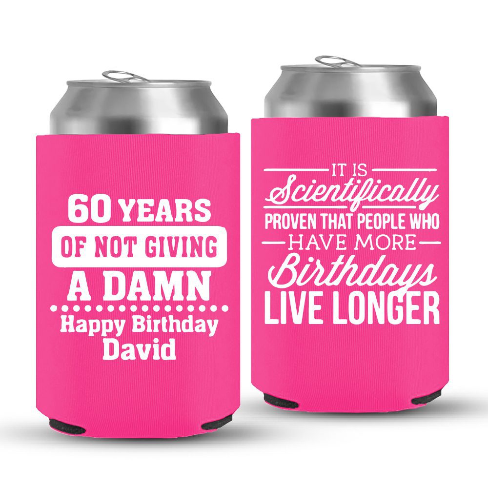 Give our birthday can coolers to your close ones as a birthday favor after throwing a memorable party. These 60th birthday can coolers are pre-designed with interesting quotes on two sides and the customization is applied to the name of an individual. Prepare the ultimate birthday with our birthday can coolers that are highly insulated and collapsible. We offer foam birthday can coolers in multiple colors and you can buy them in bulk at wholesale prices.