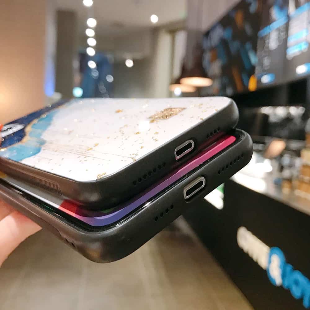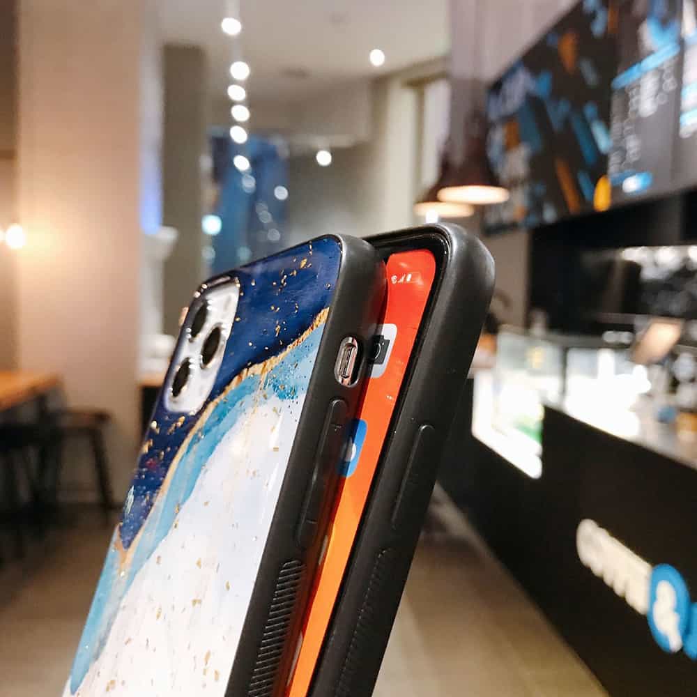 Phone case with Chic Marble Gold Foil that makes the phone look stylish. Two types of design are available that are, blue apricot leaf with gold foil and gold foil blue fault. A marble pattern is featured on this case along with gold glittering foil. It provides maximum protection to the phone while making you stand out in a unique and creative style. The cute shiny glitter design on the back will make your iPhone more fashionable and luxurious. It is easy to install or remove the phone from this and it is easy to clean the cover. In addition, we offer a huge discount on a variety of phone cases.