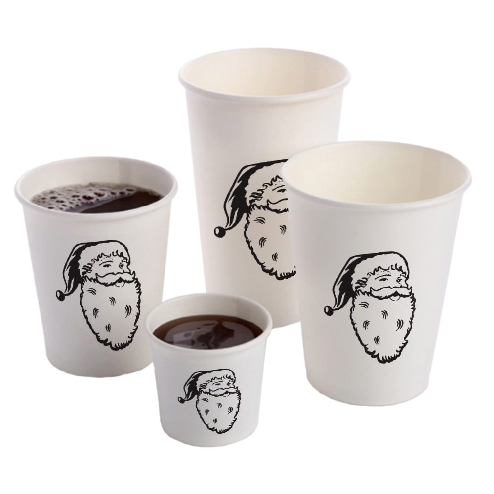 Stack up your Christmas party table with these fantastic Santa Claus paper cups. These make great party decor and are also functional to help you carry hot beverages with ease. The pre-designed Christmas theme will be very appealing to your guests. Our tier pricing ensures you get the best possible price for your favorite personalized Christmas cups.