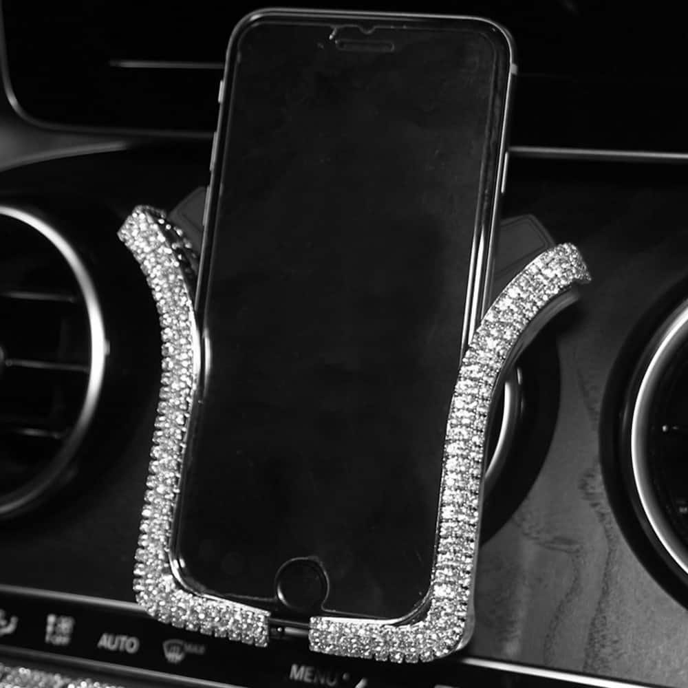 In busy urban roads or bumpy countryside, a car phone holder has multiple uses. It keeps your hone in place secured and tall. Charging phones become hassle-free and also navigating while driving becomes less stress-free. This U-shaped gravity phone holder comes with a beautiful diamond setting finish. Its holding bars are encrusted with beautiful small diamonds, which makes the phone look aesthetically very pleasing and attractive. It can be easily installed in the car vents and protects the phone from falling. Mobile Phones can also be charged using this car phone holder.