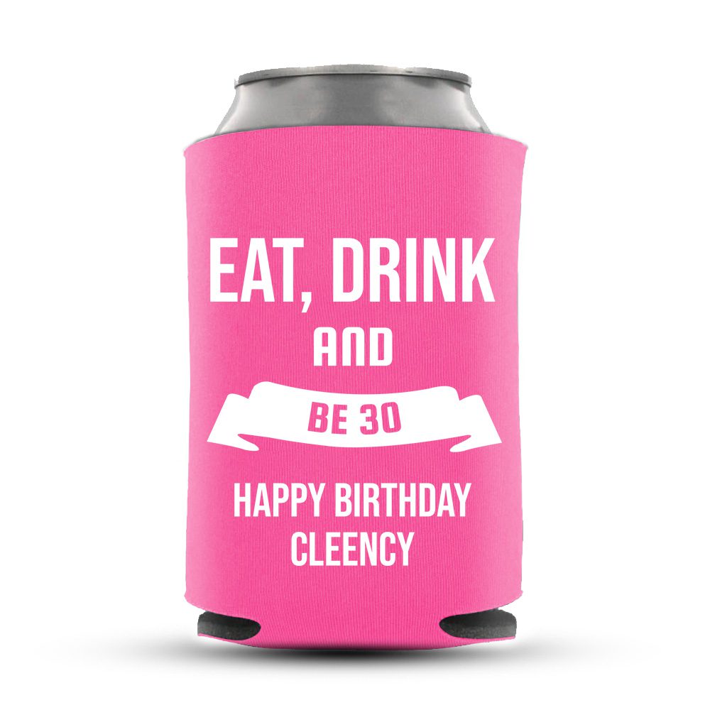 “Eat, Drink and Be 30”, is refreshing, isn’t it? Well, good thing we have many such amazing can cooler ideas with funny quotes for birthdays. These can coolers will keep drinks ice cold while also elevating the joy of birthday parties. While ordering, submit your own birthday boy/girl names & quotes and we will turn them into beautiful print on koozies. We offer beautiful color choices for these coolers which can fit all 12 oz can and bottle drinks.