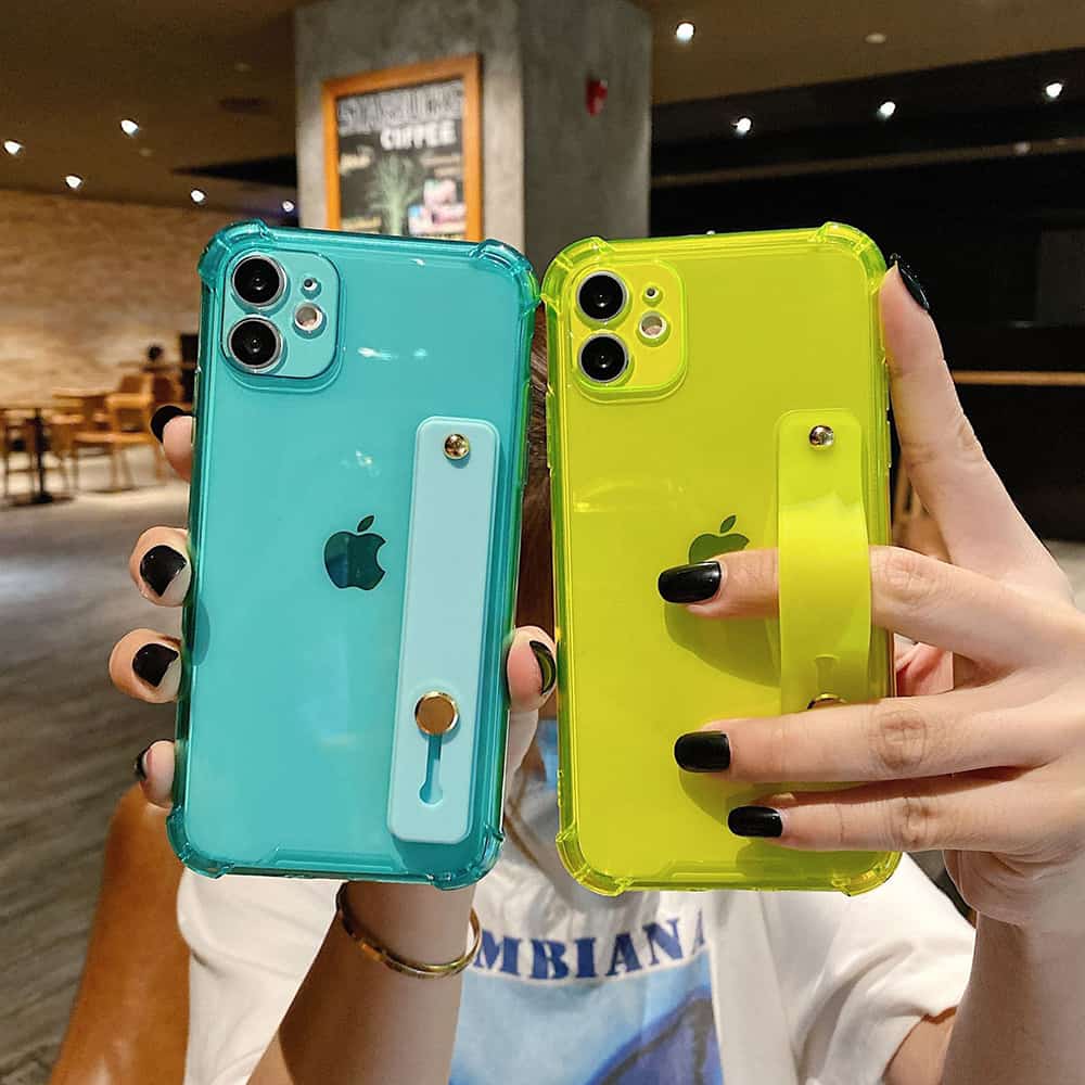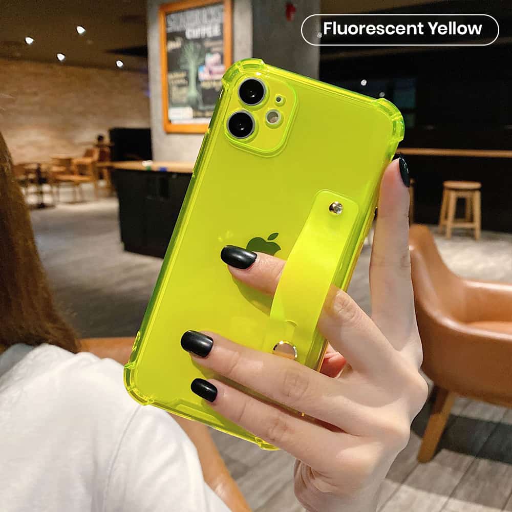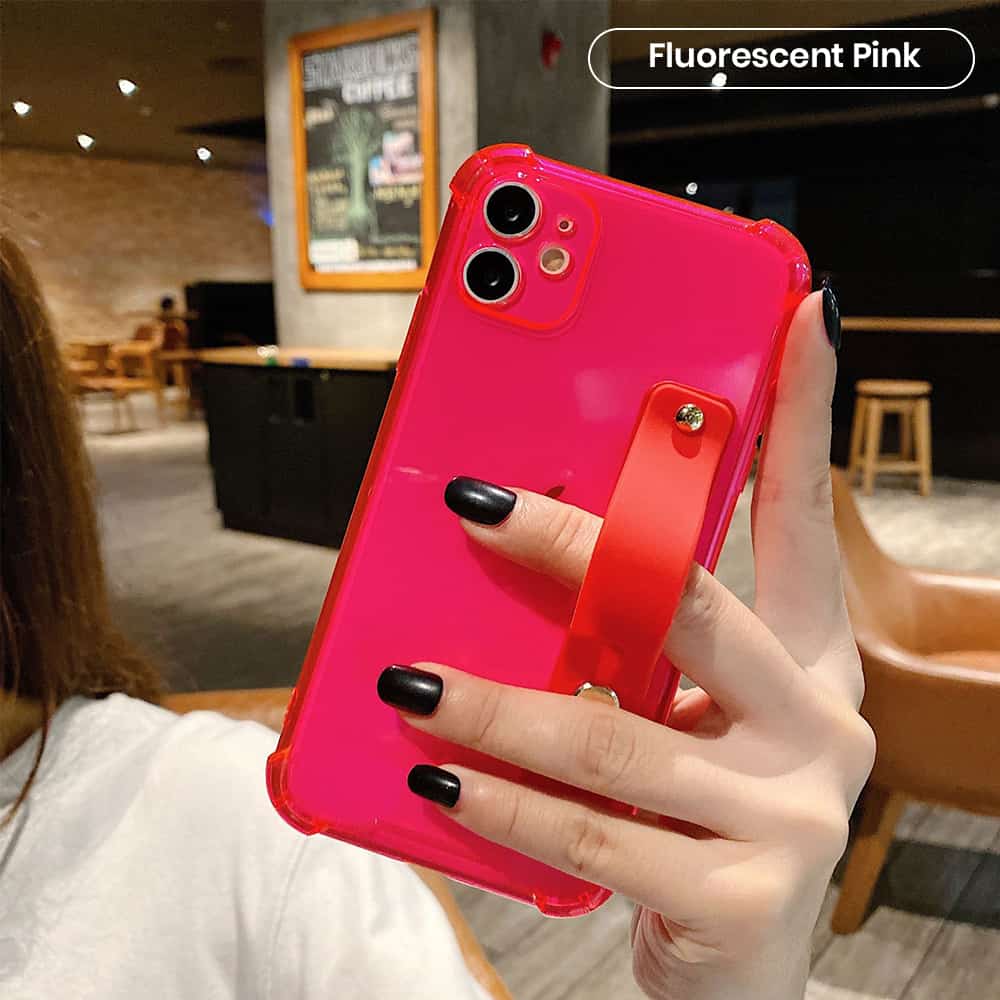 A phone case with a finger strap on the back is available in our collection. The finger strap can become a stand while watching videos, or movies. This is one of the best phone cases with a finger strap which is available in fluorescent colors. We are offering different color options that can be selected. It is necessary to select the color and type of the phone before adding the product to the cart. Made from high-grade TPU material that lasts for a long time and protects the phone from falling off. Provides maximum protection from high-impact drops, scratches, and bumps.