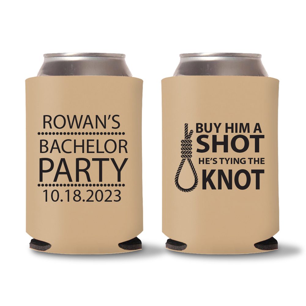 He’s Tying The Knot – Personalized Bachelor Party Koozies
