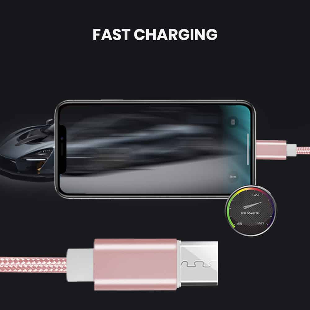 This is the 5ft high-speed charging cable, that fulfills various requirements. It charges the phone speedily and can be used for various things such as transferring data, or any other thing. This charging cable is suitable for all types of Android Smartphones. You have to select the color, and length of the product at the time of adding the product to the cart. This high-speed charging cable comes with 7 different color options which are Gold, Rose Gold, Silver, Black, Rose Red, and Blue. The length of the wire can also be selected so that using the phone while charging without braking is possible. Selection of length for the cable can be done from 1m, 1.5m, 2m, 3m. It is a Nylon braided cable that longs last.