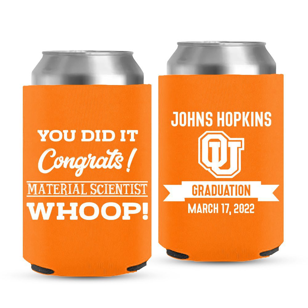 Enjoy our unique can coolers at your graduation party that will all be 12 oz cans. The high-quality insulation will keep your drinks cold longer. It has a comfortable grip and can be fully customized with us. To save you time, you can also choose our readymade template with a wide range of collections for any kind of graduation party. Your friends can use it even after the party and enjoy graduation day in the future with this durable cooler.